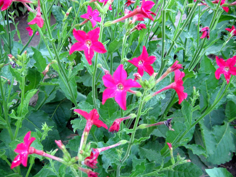 Crimson Bedder is a flowering nicotiana in the Alata family. This ornamental begins blooming just few weeks after planting, and continues to grow and bloom all summer long. The long trumpet shaped flowers and their crimson red color produce a striking appearance against the dark green foliage. It grows to about 2 1/2 to 3 feet in height, producing many branches as it grows with more flowers on each branch. Crimson Bedder is an excellent addition to the flower garden, and it makes a good background plant for other flowers. |