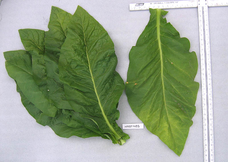 Hastines grows to a height of 4 1/2 feet to the flower head on stout plants that hold up well to wind and weather. The plants produce 14-16 large leaves from 11 to 15 inches in width and from 27 to 31 inches in length. Suckering is moderate and it reaches bloom in about 70 days..
