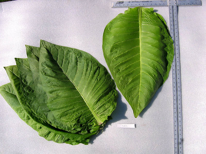 NB 11 is a Burley tobacco developed in New Brunswick Canada. The pant reaches a height of 5' to the crows foot with 14 - 16 very thick and heavy weight leaves. The pyramidal plant form and low height gives it excellent resistance to wind and heavy rains. Maturity and blooming occurs at about 65 - 70 days with the leaf ripening about 10 later.
